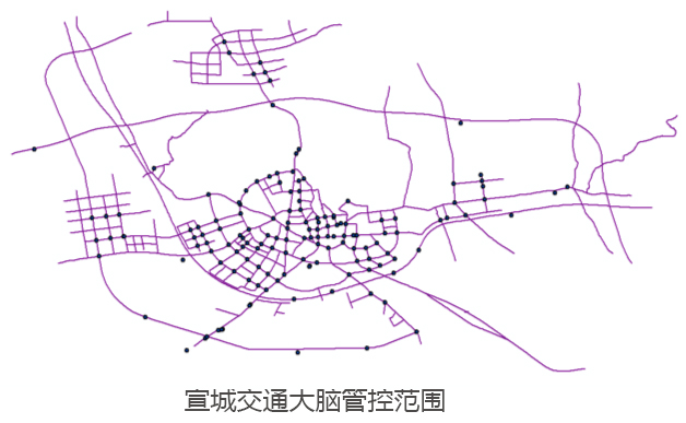 目前,纳入宣城交通大脑监管范围的道路共485条,总长度为407千米,已接入的设备及数据包括:62个卡口、327路视频监控、143套电子警察、46处测速设备、113个信号机等设备。宣城交通大脑基本具备了路网与路口承载力计算等多项功能,并在分析研判、疏堵保畅和精准打击交通违法行为等方面取得了显著成效。
