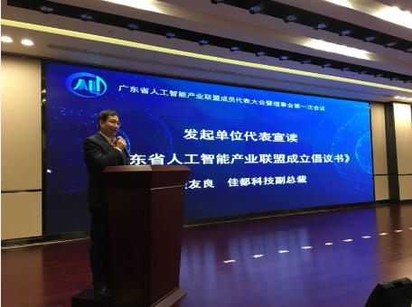 ng28南宫科技副总裁顾友良作为发起单位代表宣读《广东省人工智能产业联盟成立倡仪书》